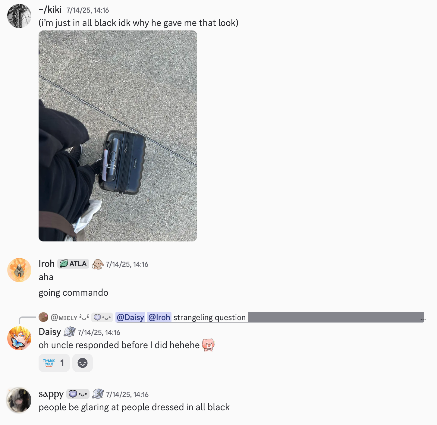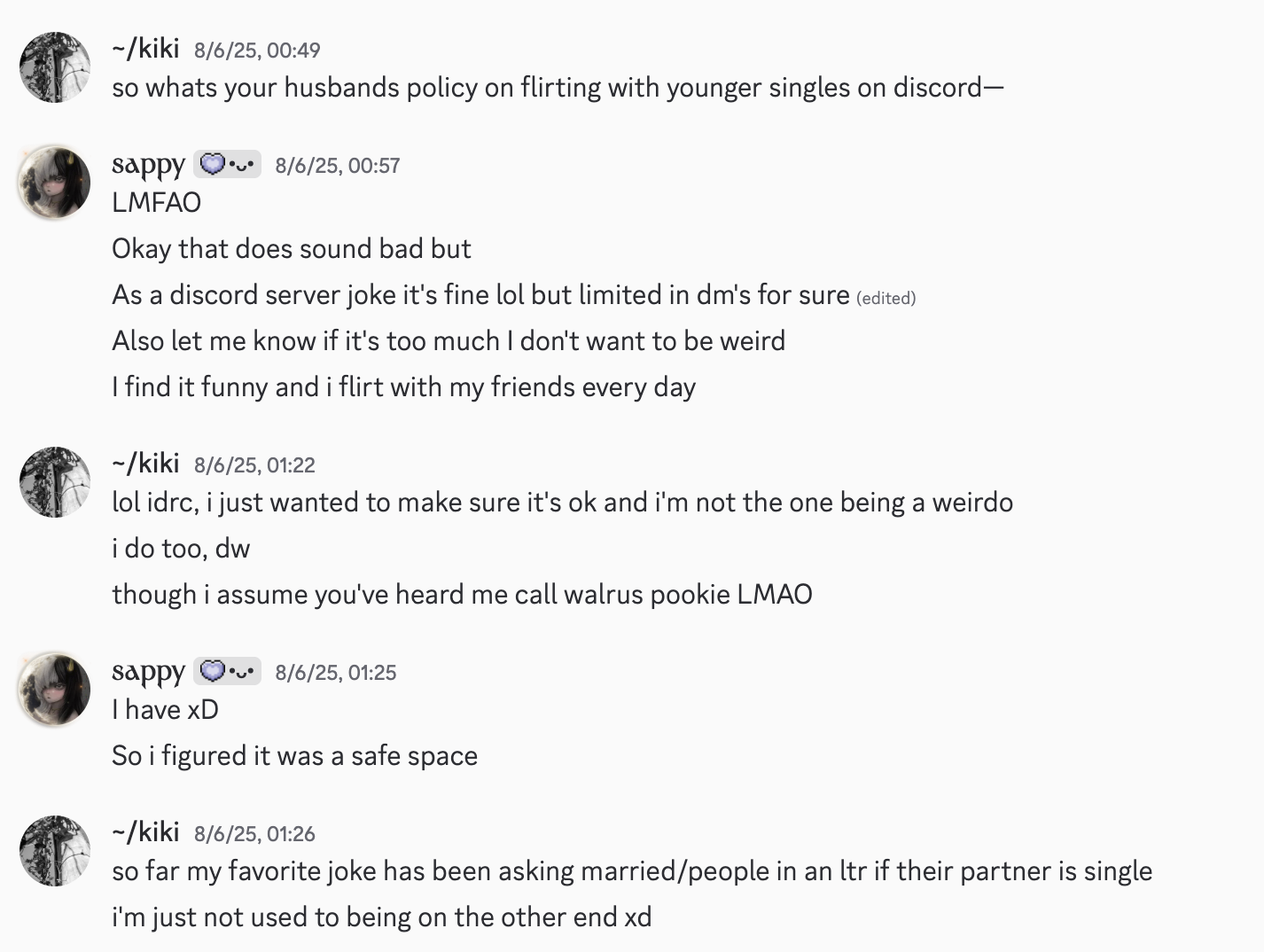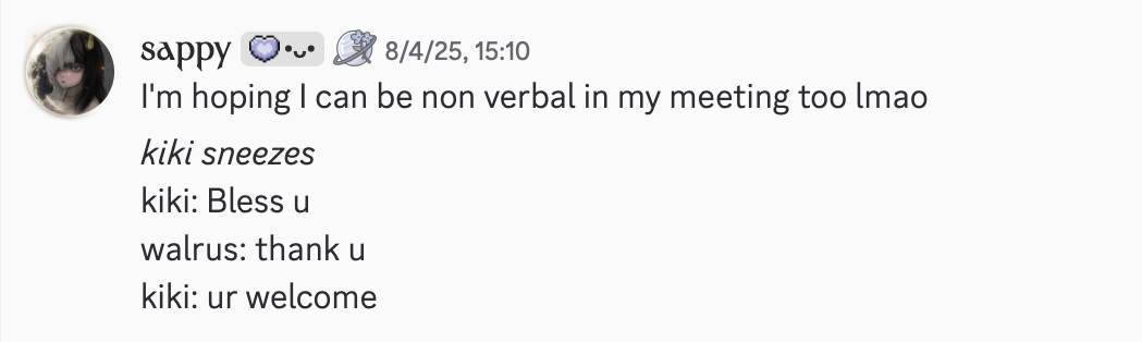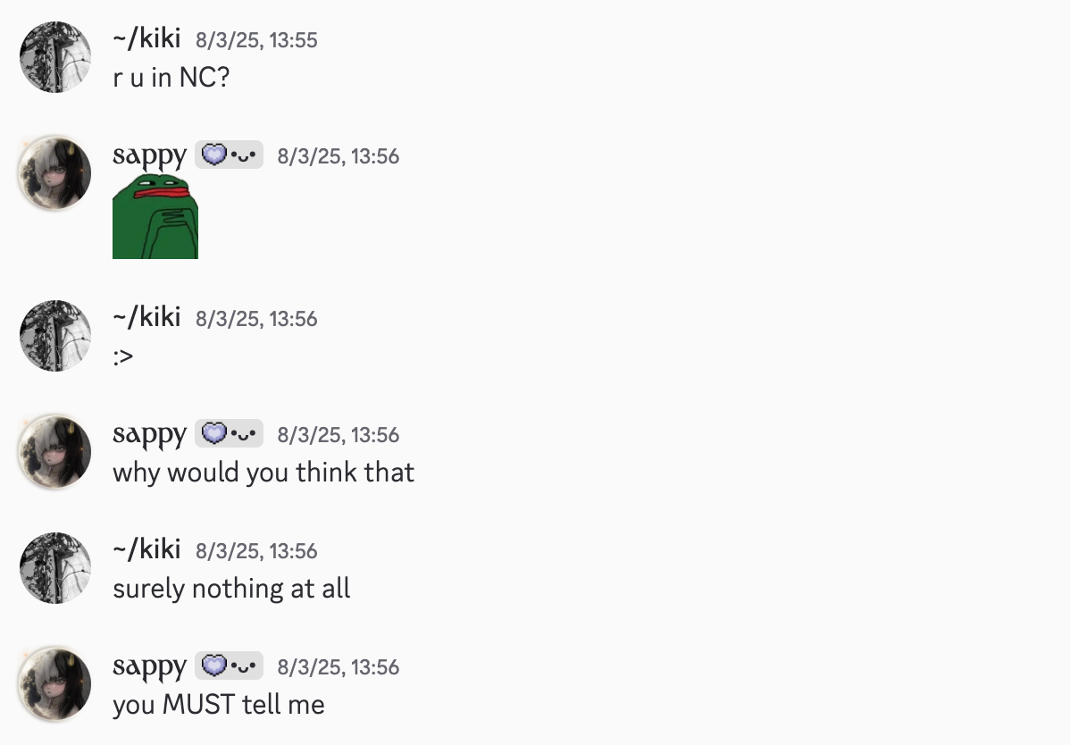 i couldn’t bring myself to get screenshots from this time. at the time, i found it amusing, light-hearted. now, i can’t think about it without… not being happy.