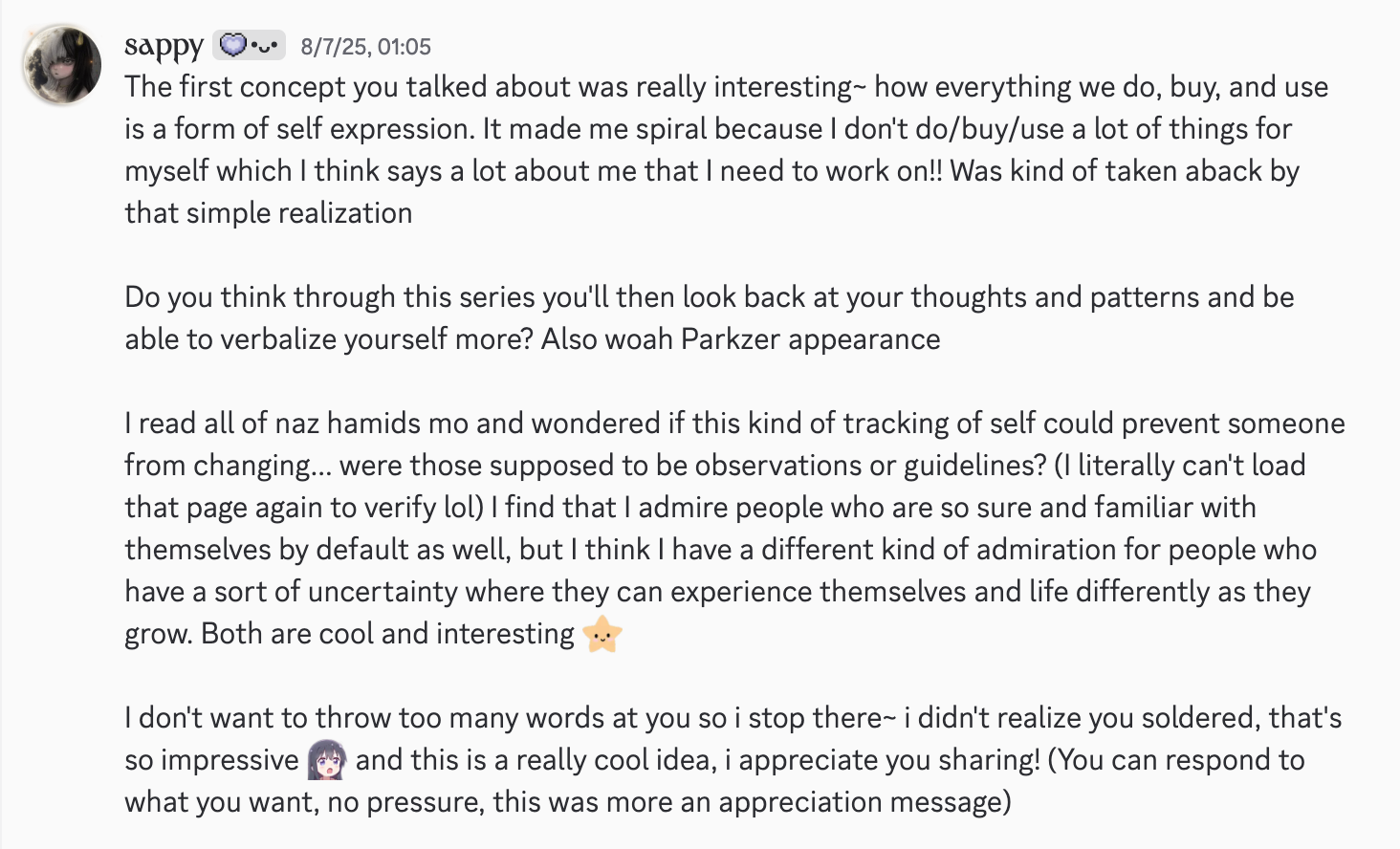 i originally wanted this site to be an archive of our bits, what we’ve shared, everything that made me thankful i met you. i quickly found that was a sisyphan goal. (did you know in our dm’s we’ve shared over a thousand links & photos? not even including text or our yapping in osume)